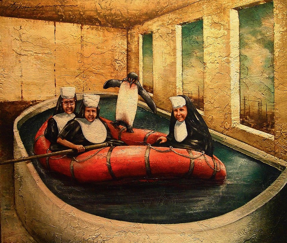 Uncategorized NRA: Nun Rafting Association September 16, 2014 Share this: Share on X (Opens in new window) X Share on Facebook (Opens in new window) Facebook Share on Tumblr (Opens in new window) Tumblr Share on Pinterest (Opens in new window) Pinterest Email a link to a friend (Opens in new window) Email Share on Reddit (Opens in new window) Reddit Like Loading... Related #acrylic#art#painting#penguin#realism#surreal#surrealism Post navigation ← Mini-Horse on Top of a Pommel Horse The Setup → About tysongrumm artist View all posts by tysongrumm → Leave a comment Cancel replyBasic HTML allowed. Δ This site uses Akismet to reduce spam. Learn how your comment data is processed.